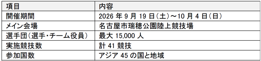 【参考】 「第20回アジア競技大会(2026/愛知・名古屋)」 開催概要