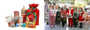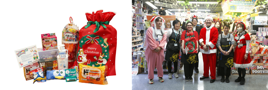 (左)クリスマスギフト例 (右)店舗で勤務するウクライナ避難民の方へプレゼントをお届けしました。