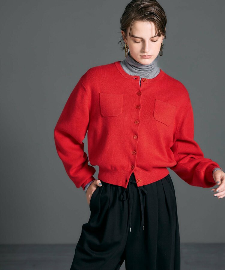 そんな水瓶座のラッキーカラーは赤色です。ぱきっとした赤色が印象的で、毎日着たくなる心地よさと、マシンウォッシャブルで使いやすさを両立させた「コットンカシミヤカーディガン」がおすすめです。