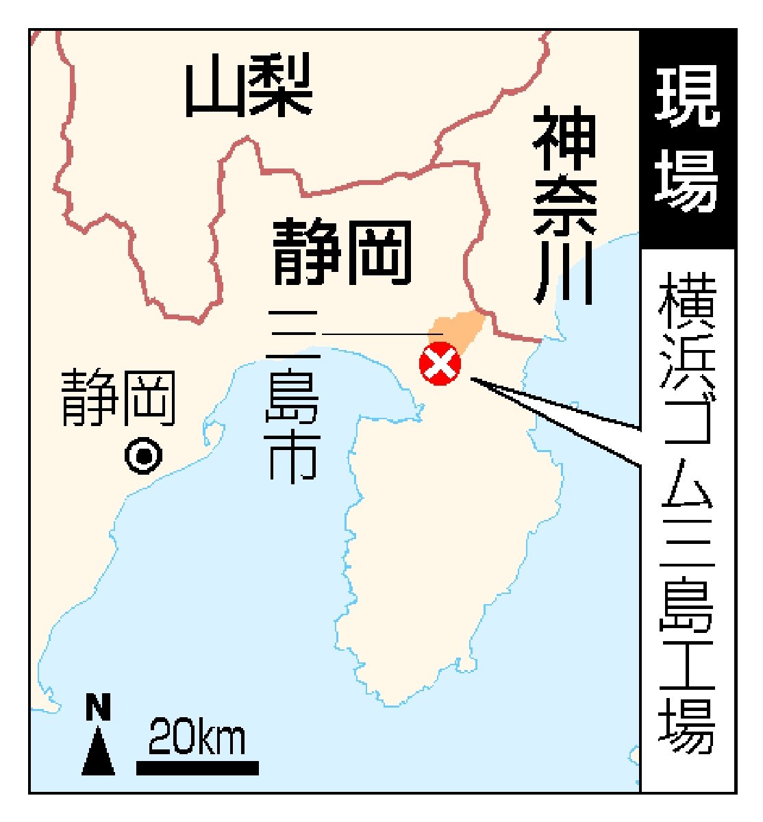 現場は三島市役所から南東約1キロ。横浜ゴムのホームページによると、三島工場は乗用車用のタイヤを製造しており、敷地面積は11万2千平方メートル。2024年時点の従業員数は約980人としている。...