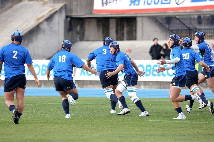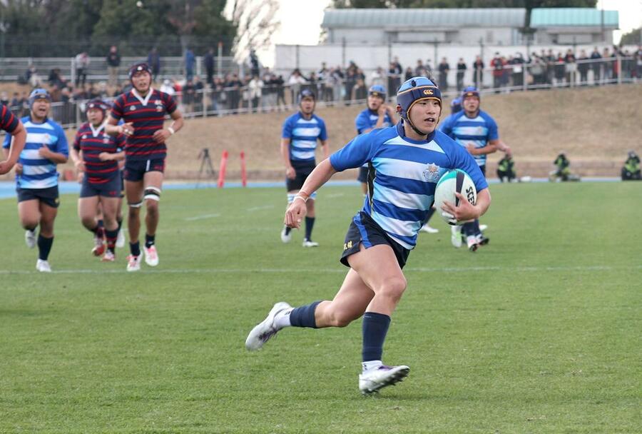 後半は立ち上がりから2トライを奪われたが、後半14分にモールからCTB鳥山珀亜がトライを決めて反撃を開始。19分にインターセプトからFB新井匠郎、27分にもSH宮迫正宗がそれぞれトライを決めたが...