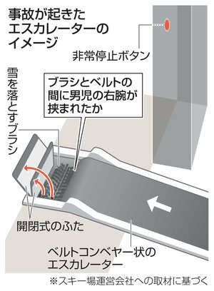 北海道の事故では、エスカレーターに異物が巻き込まれた際に自動で非常停止する機能が何らかの理由で作動しなかった。池の平温泉スキー場では毎朝、自動停止用の保安装置が正常に動作するか確認しているという。担当者は「今の安全対策を変更する予定はないが、係員への安全管理の周知を徹底し、気を引き締めて営業したい」と話した。