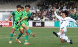 前半15分、帝京長岡のMF樋口汐音がシュートを決め先制する=駒場スタジアム