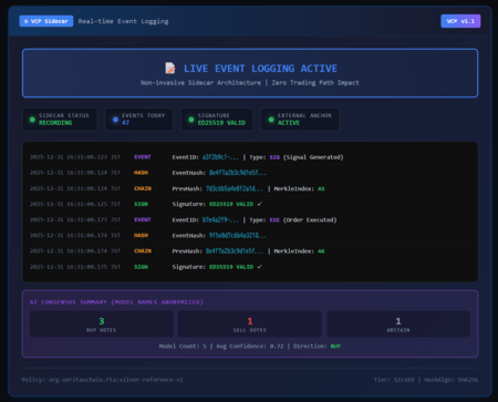 VCP v1.1は、VCP v1.0との後方互換性を維持しながら、アルゴリズム取引およびAI駆動型取引システムにおける外部検証性と監査完全性を大幅に強化したプロトコルアップデートです。