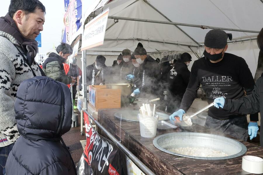 全国各地から集まる伝統的な雑煮や創作雑煮と、地元新発田の具沢山雑煮とで日本一の雑煮を競う。22回目の今回は36店が集結する見通し。五十公野公園に臨時駐車場。無料シャトルバスが運行予定。