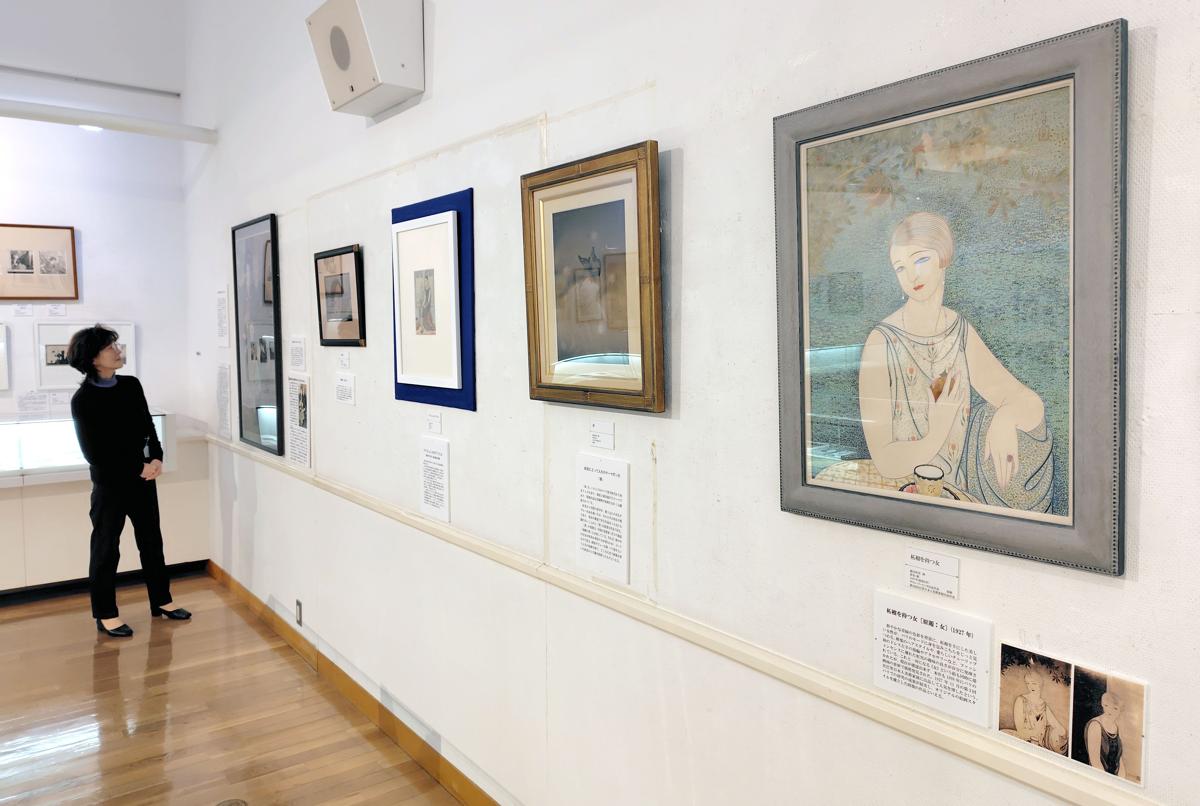 初公開となる「パリジェンヌのアトリエ」(制作年不詳)をはじめ、「巴里の散歩」(1926年)、「柘榴(ざくろ)を持つ女」(1927年)、「土曜日の窓」(1928年)など約100点展示。