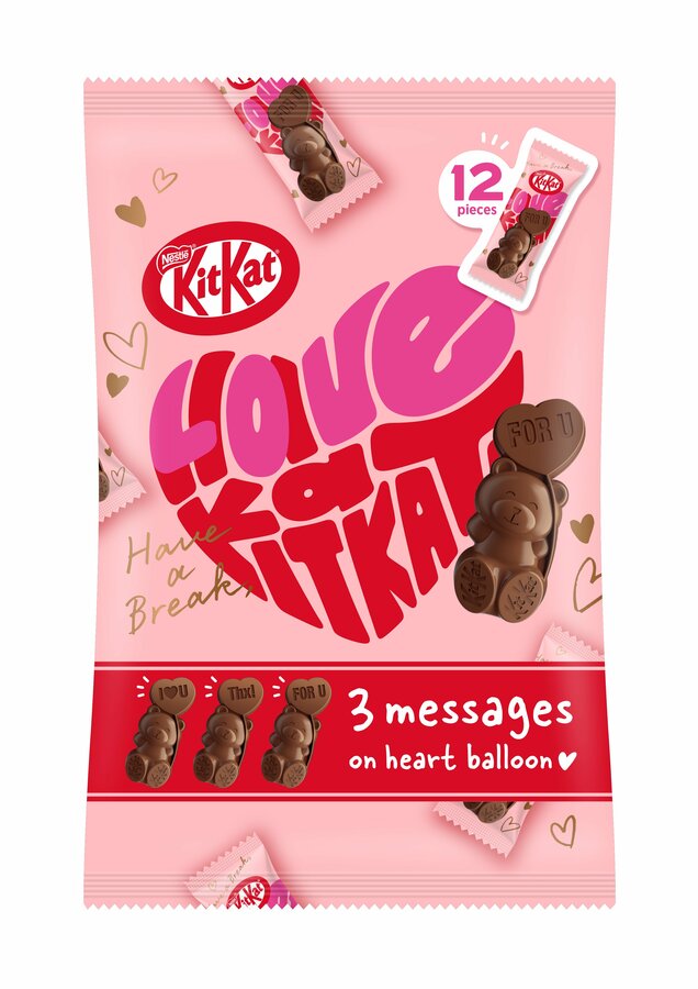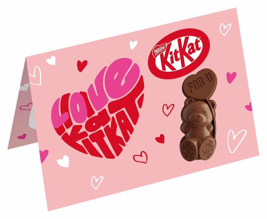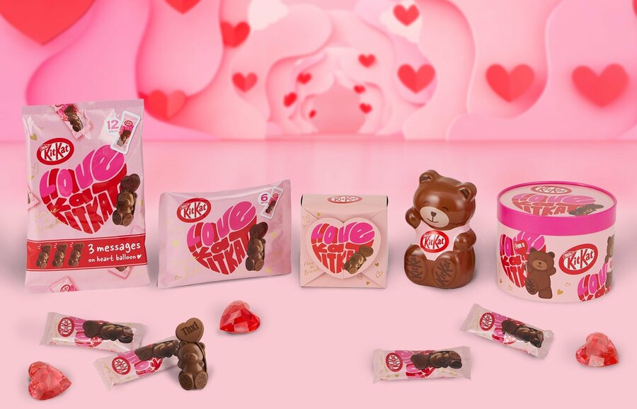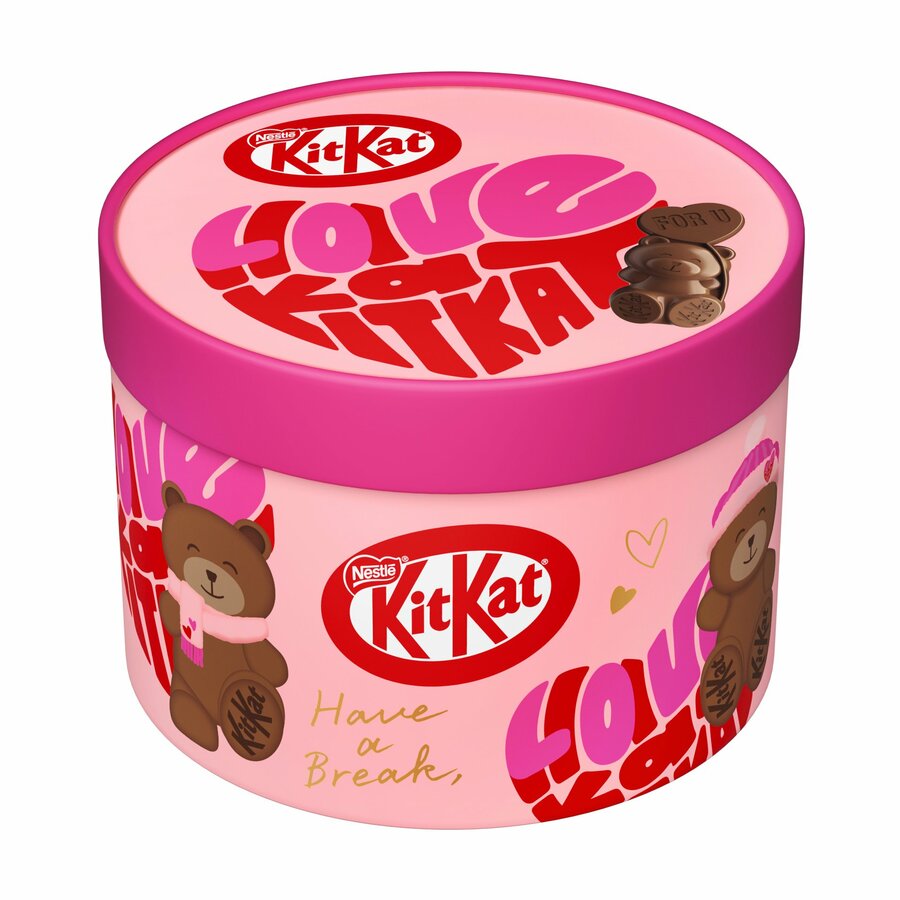 ネスレ日本が2022年以降、バレンタインシーズンに販売している「キットカット ハートフルベアー」は、クマの形をかたどった可愛らしい立体デザインや華やかなパッケージが特徴です。バレンタインの楽しみ方が自分へのご褒美や家族・友人へささやかな感謝を伝える日へと広がる中、“気軽に贈れる可愛さ”が毎年好評をいただいています。