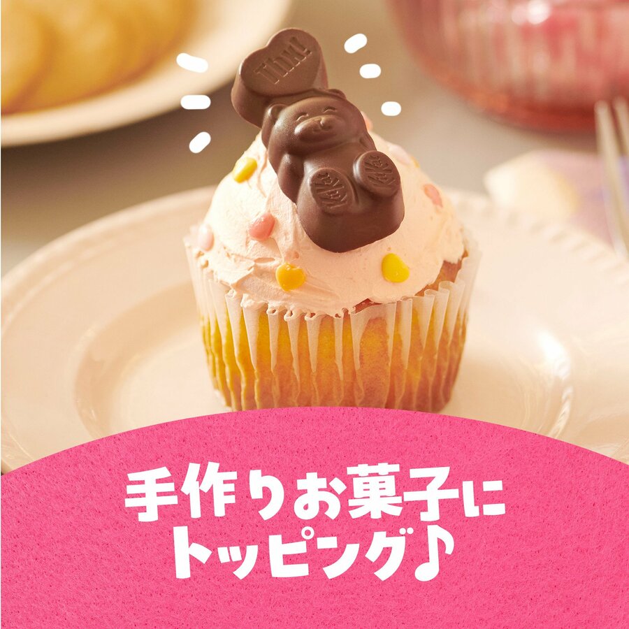 各製品の個包装正面には“I♡U”、“Thx!”、“For U”など、3種類のメッセージがデザインされています。また、裏面には、手書きメッセージ欄もあり、日頃の感謝の気持ちなどをカジュアルに伝えることができます。その他、ケーキに“クマ型キットカット”を飾ったり、手作りお菓子やデザートのデコレーション素材として活用するなど、可愛さと手軽さを兼ね備えたバレンタインを提案していきます。