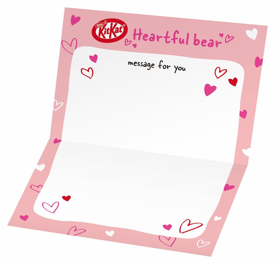ネスレ通販オンラインショップ、もしくは、楽天内ネスレ通販で、「キットカット ハートフルベアー」製品を1月6日(火)から1月13日(火)までの先行予約特典期間中に購入すると、予約特典としてメッセージカードが付きます。