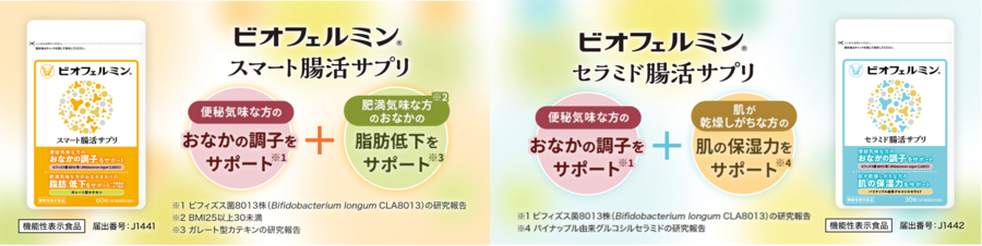 大正製薬株式会社[本社:東京都豊島区 社長:上原 茂](以下、当社)は、便秘気味な方のお腹の調子におすすめの成分に加えて、プラスαの悩みにも応える成分を配合した新しいサプリメントシリーズとして、肥満気味な方※1のおなかまわりも気になる方におすすめの成分を配合した「ビオフェルミン スマート腸活サプリ」、肌が乾燥しがちで潤いも気になる方におすすめの成分を配合した「ビオフェルミン セラミド腸活サプリ」の2製品を、2026年1月6日(火)より通販限定で販売いたします。