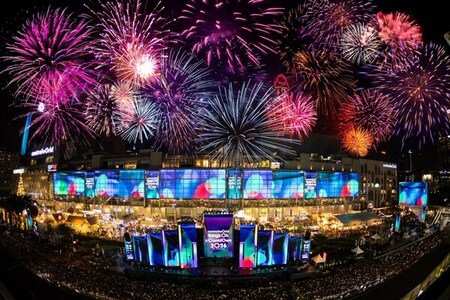 その夜のビジュアルの目玉となったのは、バンコク中心部で打ち上げられたタイ最長のシティスケープ花火であり、ラチャプラソン地区一帯に広がる大規模な panOramix デジタルスクリーンと同期した、初のドローンショーとの融合演出でした。この連動した演出により、会場はもちろん、全国向けの生中継を通じても、都市全体が一体となったカウントダウン体験が創り出されました。