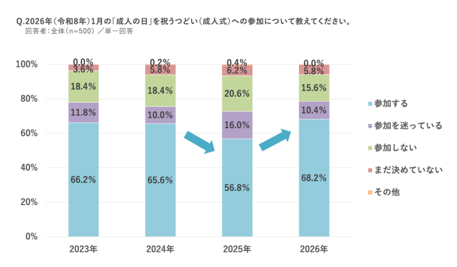成人式への参加意向が反転増、「参加する」が68.2%に回復