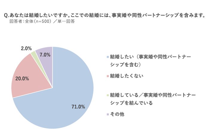 「結婚願望あり」は71.0%。うち77.8%が「子どもが欲しい」