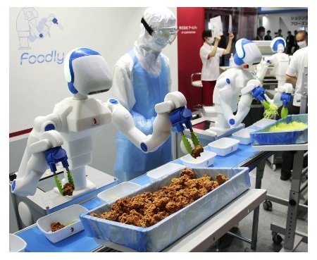 5. 愛知県常滑市で食品製造技術の展示会が開かれ、総菜を弁当に詰めるロボットが紹介された(2021年6月1日)