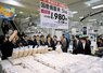 6. 政府備蓄米の販売を開始したスーパーを視察する小泉進次郎農相(当時、中央)(2025年6月1日)