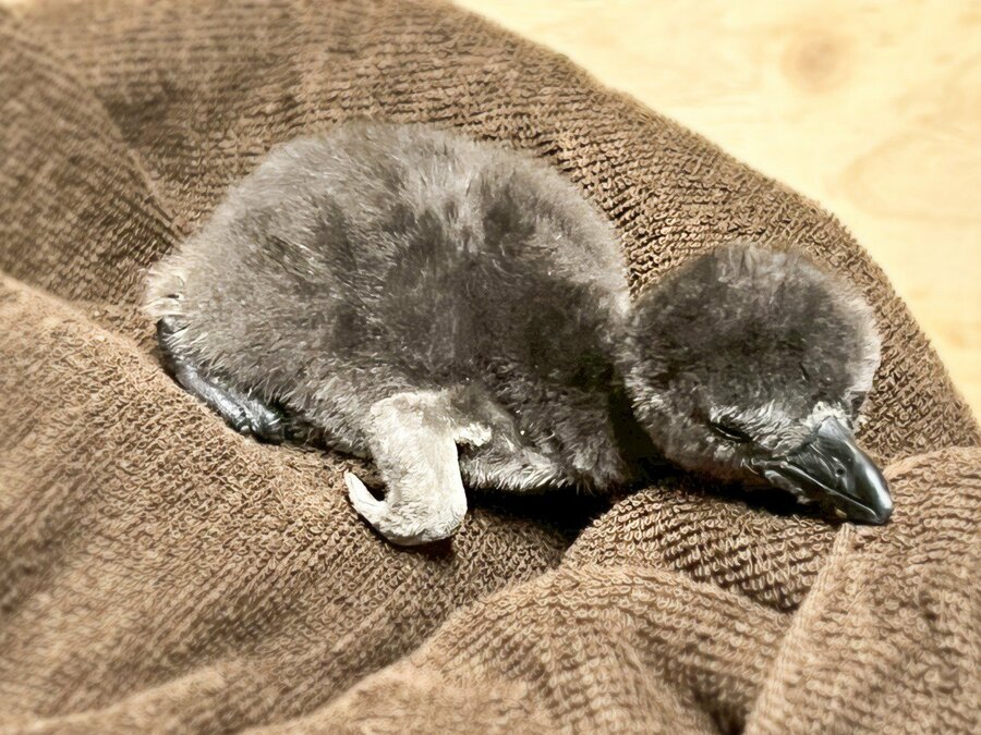 京都水族館で飼育している「ケープペンギン」は、毎年10月から翌年3月ごろにかけて繁殖の時期を迎えます。2025年11月12日(水)に「まつ(松原通り)※1」の産卵が分かり、一卵目は産卵から37日目の12月19日(金)に嘴打ち※2(はしうち)が確認された後、12月21日(日)に無事、ふ化しました。二卵目も12月24日(水)にふ化し、合計2羽の赤ちゃんが誕生しました。