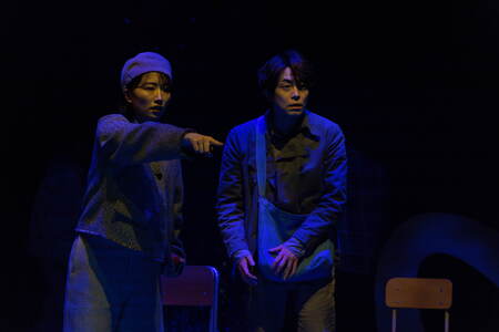 成井が「いつでもどこでも上演可能な芝居」をコンセプトに作ったという言葉の通り、西本の演出においても大掛かりなセットはなく、役者たちの芝居と小道具によって観るものの想像を膨らませるような作りだ。