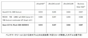 株式会社リコー(社長執行役員:大山 晃)は、中国のアリババクラウドが開発・提供する大規模言語モデル(LLM)ファミリーの「Qwen2.5-VL-32B-Instruct*1」をベースに、日本企業の図表を含むドキュメントの読み取りに対応したマルチモーダル大規模言語モデル(以下「LMM」)を開発しました。