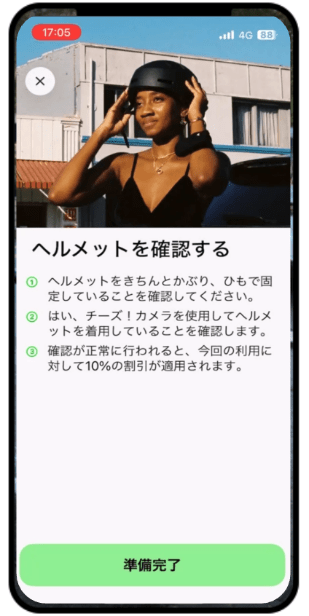 「ジオフェンシング制御」の導入により,利用者の操作に頼らずシステム側でリスクを低減する策のほか,ヘルメットを被った自分の写真をアプリ経由で送ることで料金の割引特典を実施しています。