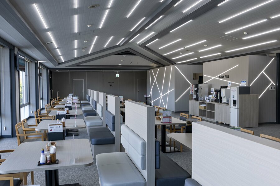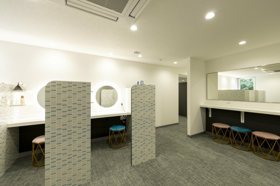 昨年10月の開場50周年を機に行った今回のリニューアルでは、自然と人とをつなぐ近未来をコンセプトに、光と幾何学ラインで未来空間を演出し、非日常体験を味わえる空間に生まれ変わりました。レストランにはボックス席も新設し、より落ち着いたひとときをお過ごしいただけるようになったほか、女性スペースも重点的にリニューアル。ホワイト系の壁紙に白いロッカーを配した女性ロッカールームや、使いやすくおしゃれになったパウダールーム、女性浴室など、明るく清潔感のあるスペースとなりました。