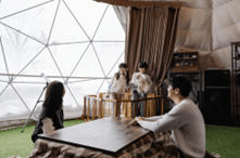 また、スキー場内のグランピング施設 「IORI」 では、ワンちゃん同伴での宿泊も可能。大自然に囲まれたプライベート空間で、愛犬とともにくつろぐ雪山ステイをお楽しみください。
