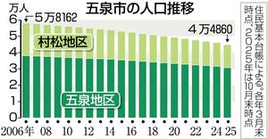新・五泉市は2006年1月1日に誕生した。06年3月末の人口は5万8162人だったが、19年5月末に5万人を切った。25年10月末現在は...