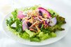 ちぢみほうれん草に加え、小松菜や玉ねぎも入ったナムルサラダ。干し海老の旨みを効かせたソースで和えています。くるみで香ばしさをプラス。にんにくやごま油がふわっと香り、食欲をそそります。