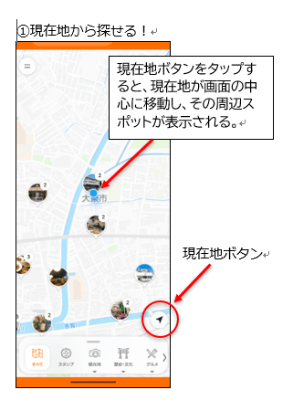 ・現在地から探せる(周辺の飲食店・観光スポットがすぐ表示)