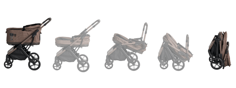 FikaGOブランドのペットカート初、ペットを乗せるキャビンを外しても付けたままでも折り畳める新仕様。キャビンの着脱も簡単なので、使用シーンに応じて畳み方が選べます。