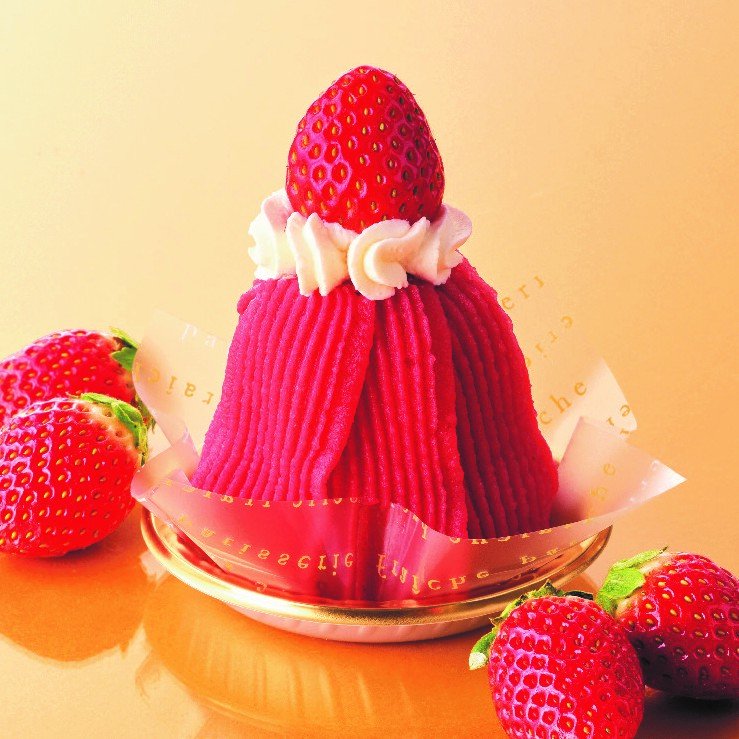 鮮やかな色合いが目を引く苺モンブランです。やさしい甘味のカスタード入りホイップクリームと苺ムースを重ね、白餡を使用したなめらかな苺あんクリームで包み込みました。苺の甘味とほどよい酸味のバランスがよく、口いっぱいに苺のおいしさが広がります。