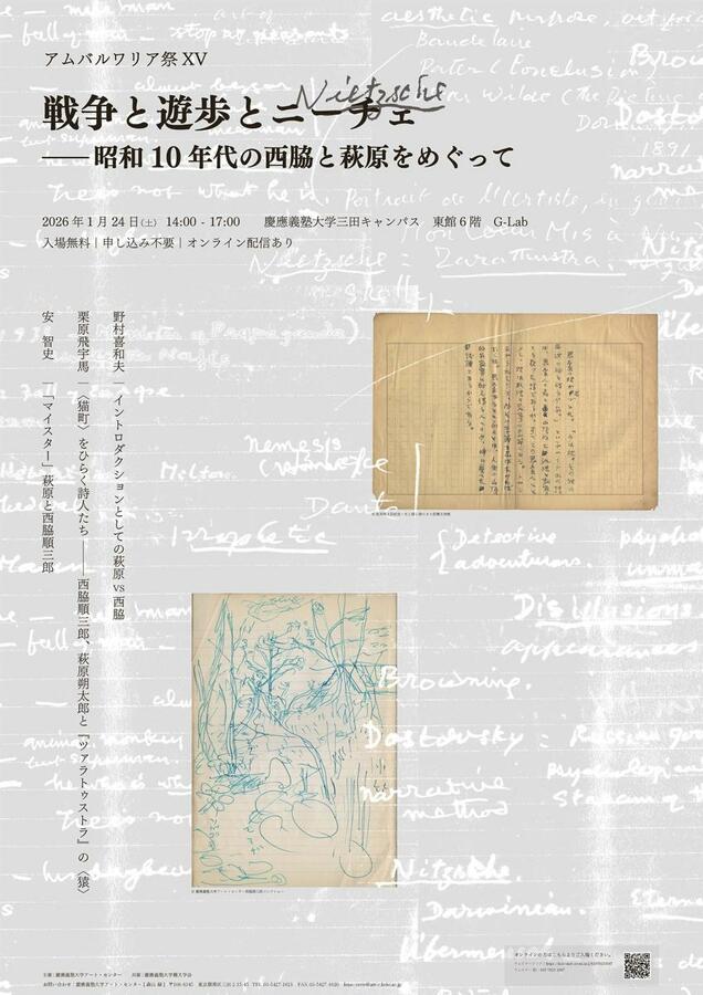 会場、オンラインとも無料、申し込み不要。オンライン参加の方法は、センターのホームページに記載している。問い合わせは慶大アート・センター、03(5427)1621。