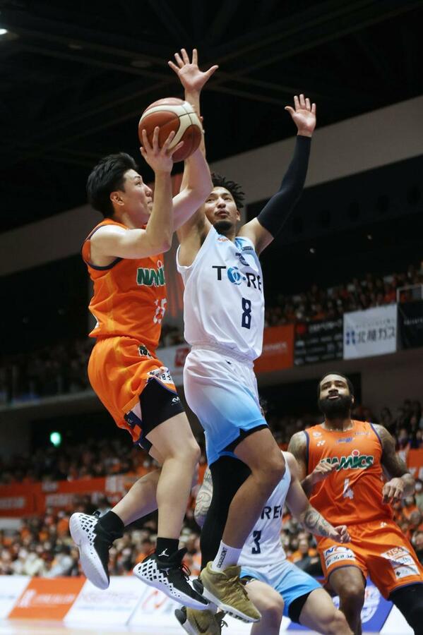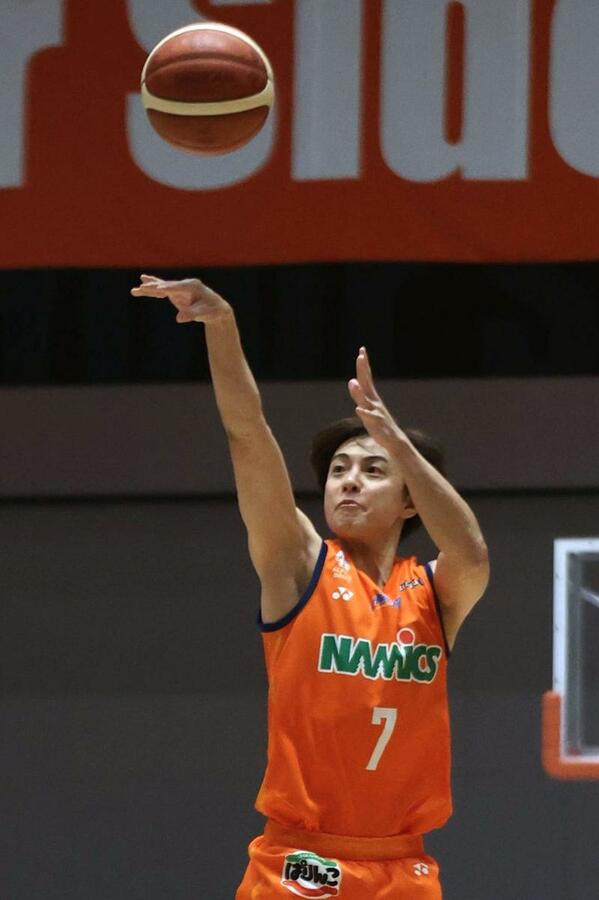 新潟の先発はフェルプス、長谷川智伸、五十嵐圭、ムトンボ、長尾光輝。第1クオーターから相手に3点シュートを6本決められ、連係ミスから攻撃のチャンスも失い、リードを許した。
