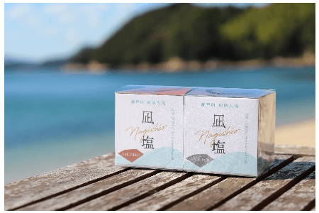瀬戸内産の八朔の果肉と皮を丸ごと使用したジャムを、八朔ピューレを練りこんだ求肥で包み、しっとりとした煎餅で挟んだ三層構造。柑橘のさわやかな酸味と、ほのかな苦み、それと香ばしい煎餅の風味。広島大学との共同研究で生まれた商品。パッケージデザインも風呂敷と八朔をモチーフに、瀬戸内の海のブルーと、八朔のオレンジ色を基調とした色合い。