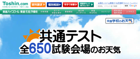試験後の出願校の決定に役立つ、東進の大学入学共通テスト合否判定システム( https://www.toshin.com/hantei_sys/ )。「共通テスト 全650試験会場のお天気」のサイトからアクセスできます。あわせて活用することで、共通テスト後の出願校決定や学習にも役立ちます。