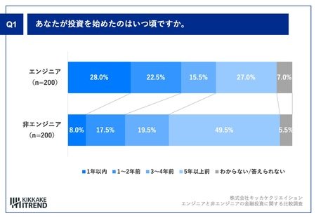 ■投資開始時期、エンジニアは「1年以内」が28.0%、非エンジニア比20ポイント増で新規参入が加速