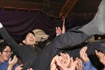 「婿の胴上げ」で胴上げされた花婿の吉田有志さん=南魚沼市六日町