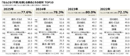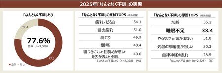 2025年約8割が感じた「なんとなく不調」 症状TOP3は「疲れ・だるさ」「目の疲れ」「肩こり」