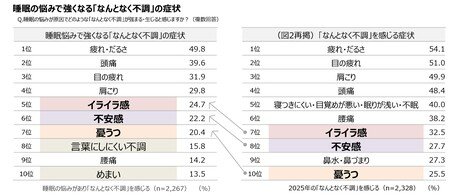 睡眠の悩みで強まる「なんとなく不調」TOP3「疲れ・だるさ」「頭痛」「目の疲れ」