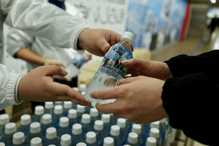 当日は、取組に賛同いただいた県内企業約50社の社員が書いた直筆メッセージをシール化し、そのシールを貼付した「富山県の水」を、首都圏で働く方へ配布しました