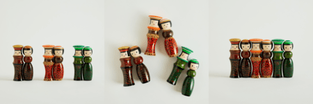 3体がぴったりと寄りそう「ルビンのこけし フレンド」は、3つ並べても幅約12cmと手のひらに収まる可愛らしいサイズが特徴。茶色とゴールドを基調にした「チョコレートカラー」を、期間限定で1年ぶりに再販いたします。インテリアとして暮らしに馴染む本商品は、バレンタインの贈り物としてもおすすめです。