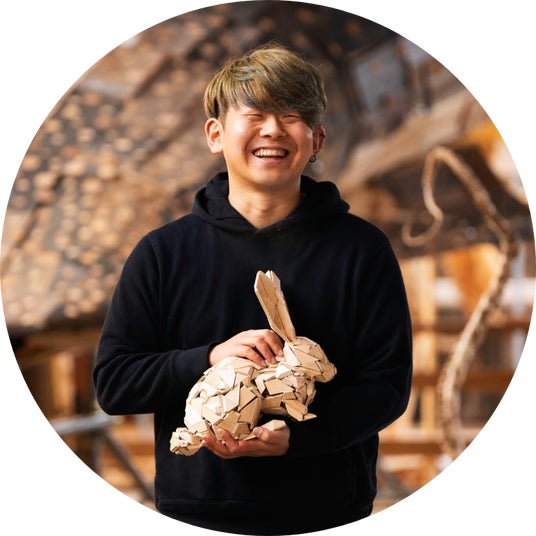 新潟県長岡市在住。廃材アーティスト。 本来捨てられるはずだった木材に新たな命を吹き込み、実物大の動物を制作する。「NIIGATA V DESIGN AWARD 2024」審査員特別賞受賞。都内有名ホテルや商業施設での作品展示に加え、中国・深圳のアートフェアにゲスト招聘されるなど、国内外で注目を集める。