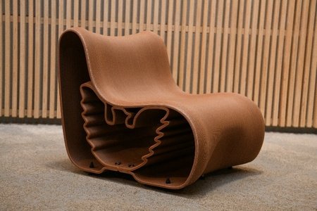 大阪・関西万博のルクセンブルクパビリオンは「Doki Doki – ときめくルクセンブルク」をテーマに、同国の持続可能性と循環型社会のビジョンを示し、好評を博しました。パビリオンの内装展示施工を担当したDNPは、閉幕後の資源再利用計画の一環として、パビリオンで使用された机・椅子・インテリアなどの木材を回収。これらを粉砕・ペレット化し、3Dプリンターを用いて新たな椅子3脚として再生し、同国と関係の深い本学への寄贈が実現しました。
