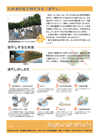 地域の宝ともいえる自然環境を次世代へ引き継ぐため、地元団体を中心に、池干し活動が行われています。