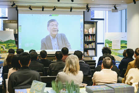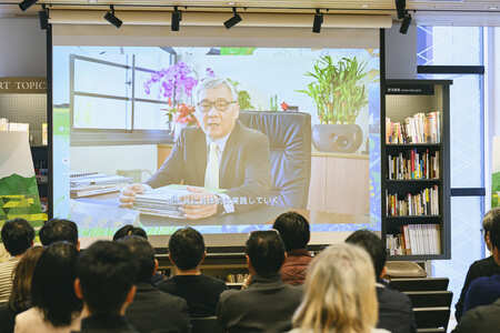 ビデオを通じて台湾農業部農村発展及水土保持署の陳俊言署長、SATOYAMAイニシアティブ国際パートナーシップ(IPSI)の渡辺綱男事務局長より、人と自然が共通する知恵や経験を共有し、国際社会が協力してきた背景や、絵本発売へのお祝いのメッセージをいただきました。