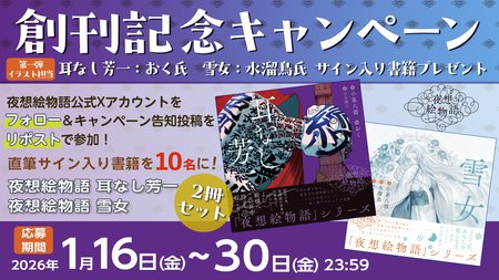 シリーズ〈夜想絵物語〉の創刊を記念し、第一弾のイラストレーターサイン入り書籍が当たるキャンペーンを実施いたします。