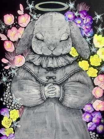 そのため、一番よく描くモチーフであるウサギは、自分自身を投影していたり、私の神様のような存在であったり様々です。