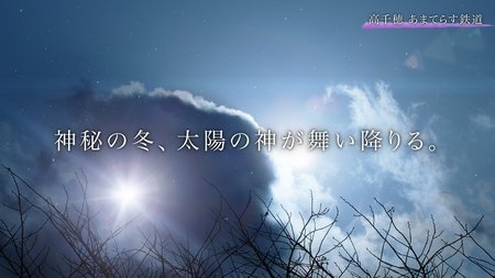 太陽の光を浴びて神々しく走る列車を、高千穂の神秘的な自然美とともに映像化。太陽が一番綺麗に見える冬に、視聴者を神話の世界へと誘うエモーショナルな映像を制作しました。