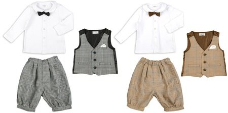 ツイード調の蝶ネクタイがセットになった大人顔負けの3点セットスーツです。
