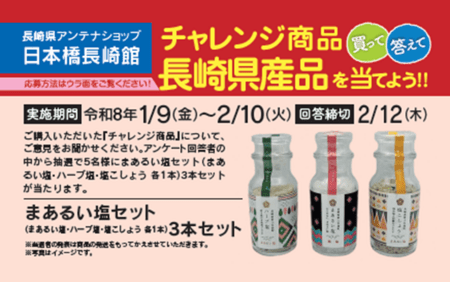 長崎県は、東京・日本橋にある長崎県アンテナショップ「日本橋 長崎館」(東京都中央区)の重要な機能の一つである「情報受信機能の強化」を図るため、県内事業者が製造した新商品・首都圏未取引商品などのチャレンジ商品コーナーを設置し、首都圏の消費者ニーズなどを収集する「テストマーケティング」を実施します。