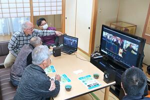 会議は刈羽村のほか、18年の大阪北部地震で被災した大阪府吹田市の社会福祉協議会も参加し、17日にあった。刈羽村会場には、村社会福祉協議会の職員と住民ら7人が集まった。